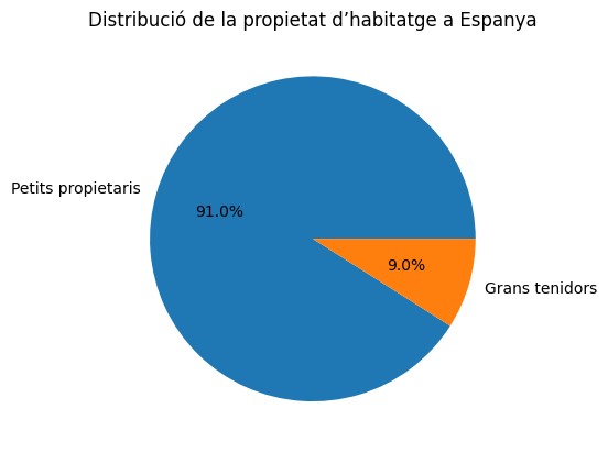 L’estructura del parc d’habitatge a Espanya es caracteritza per una atomització molt elevada de la propietat. Més del 90% dels habitatges pertanyen a persones físiques, i la immensa majoria d’aquests propietaris disposen d’un o dos immobles. Els anomenats grans tenidors (més de 10 habitatges) són escassos: aproximadament 27.000 propietaris concentren només el 4,3% del parc total.