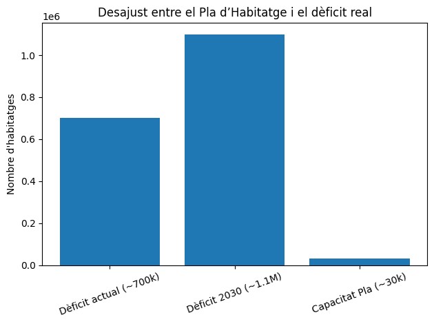 Mentrestant, el temps corre en contra. El pla arrenca formalment el 2026, però la realitat dels processos urbanístics i constructius empeny el lliurament efectiu d’habitatges cap al 2029 o 2030. En aquest interval, la creació de llars continuarà al ritme actual, ampliant el dèficit que es pretén corregir.