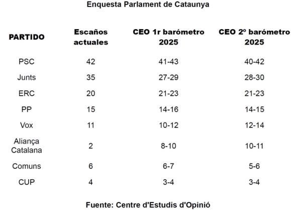 El PP permanece anclado, con tendencia a la baja, y al alcance del sorpasso por parte de VOX, lo que sería demoledor para sus expectativas en toda España. Quizás, en el próximo siglo, el PP disponga de un partido serio y de verdad en Cataluña.
