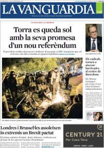 La promesa del President Quim Torra d’un nou referèndum a les portades dels diaris de Catalunya
