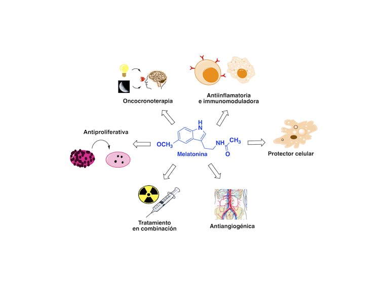 Pel que fa a això, s’ha demostrat que l’administració exògena augmenta les reserves subcel·lulars de melatonina. En conseqüència, la inclusió d’aquesta molècula a la teràpia anticancerosa convencional podria ser una estratègia per reduir el dany molecular produït per la ràdio/quimioteràpia sobre les cèl·lules sanes i potenciar així l’eficàcia dels tractaments antitumorals, especialment en pacients amb la immunocompetència compromesa.